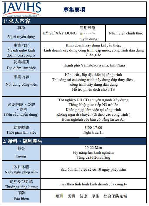 KỸ SƯ XÂY DỰNG LÀM TẠI TỈNH NARA- TUYỂN 2 ĐẦU NHẬT-VIỆT