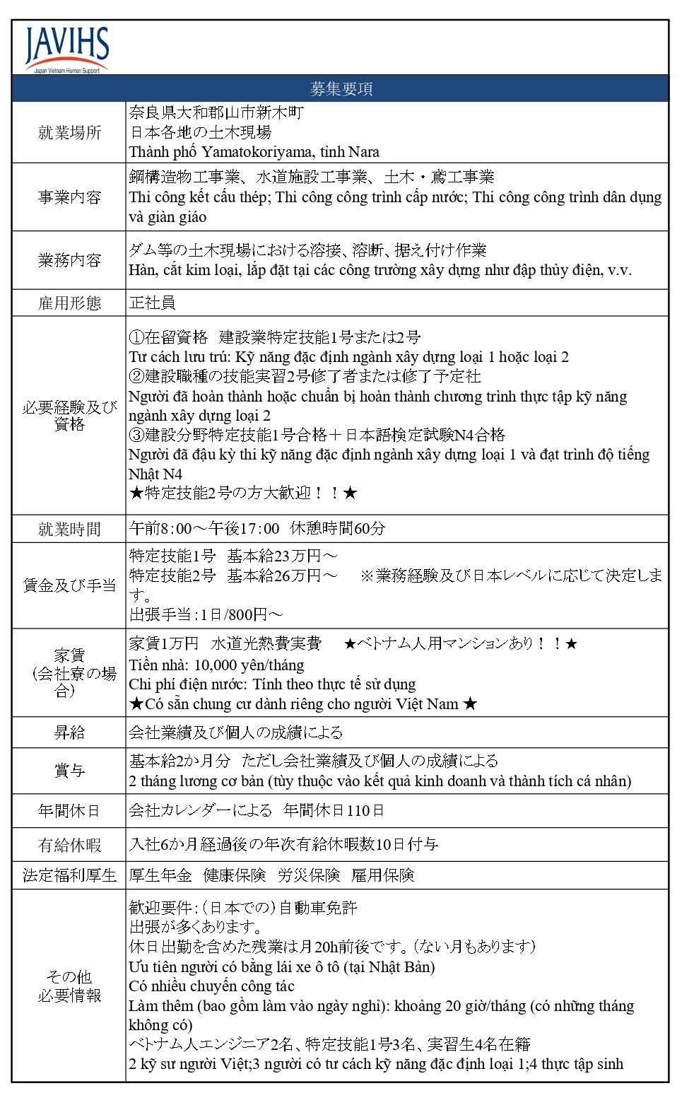TUYỂN TOKUTEI GINO XÂY DỰNG Ở NARA