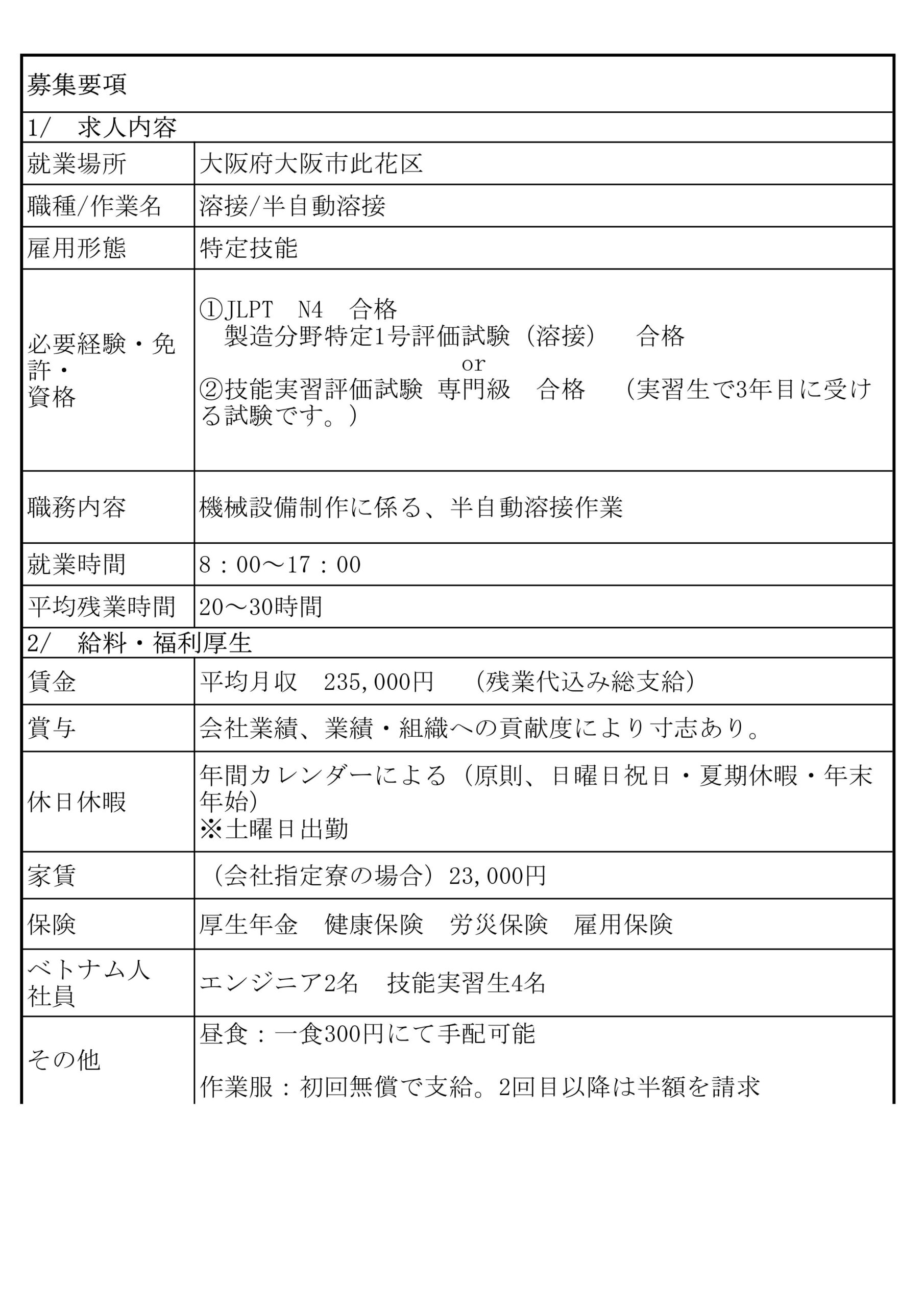 Tuyển dụng Kỹ năng đặc định – Ngành Hàn tại Osaka (Nhật Bản)